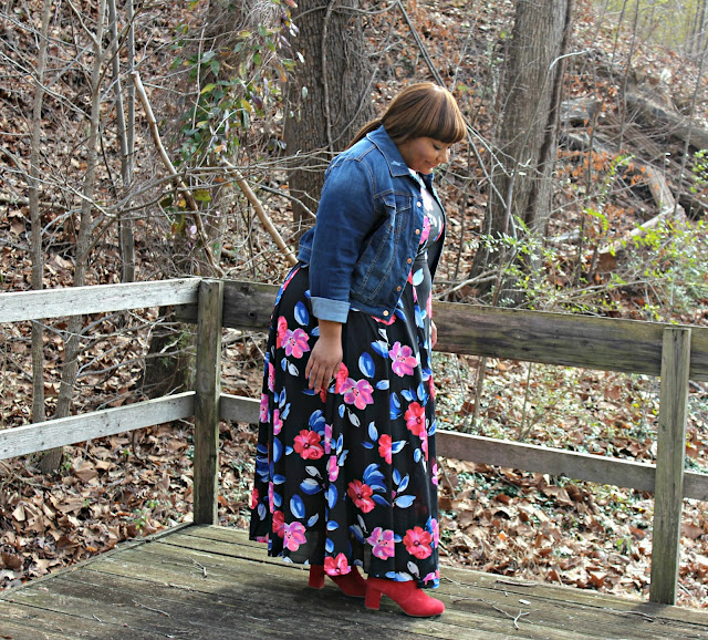 wearing my normal size 10. I sized up to an 18 in my maxi dress. My denim jacket is a size 16.